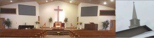 chapel and outside church banner